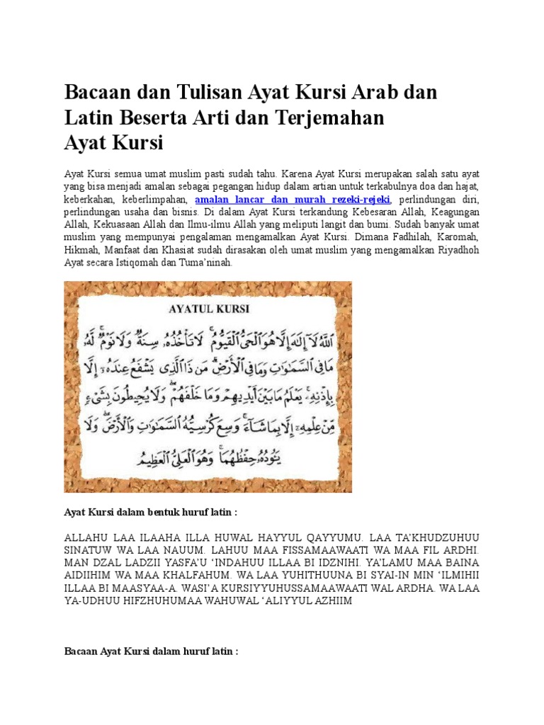 • Bacaan Ayat Kursi Arab Latin Beserta Arti Dan Terjemahan Docx