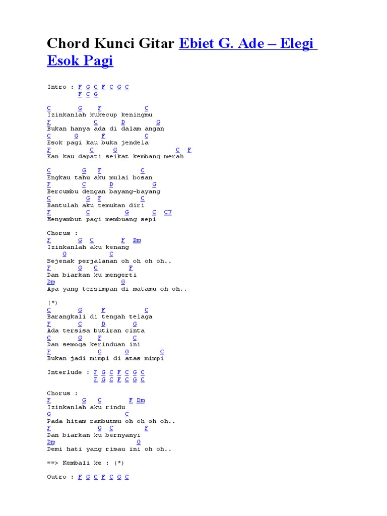 Chord ebiet g ade elegi esok pagi Indeed lately is being sought by users around us, perhaps one of you personally. Individuals are now accustomed to using the internet in gadgets to see image and video information for inspiration, and according to the title of the post I will discuss about Chord Ebiet G Ade Elegi Esok Pagi.