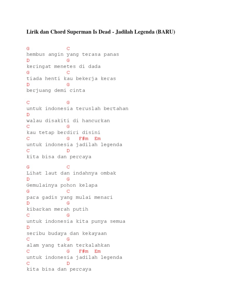 Chord Indonesia Legenda, Chord Kunci Gitar Lagu Jadilah Legenda Superman Is Dead Sid Lagu Bertema Nasionalisme Penuh Makna Tribun Solo