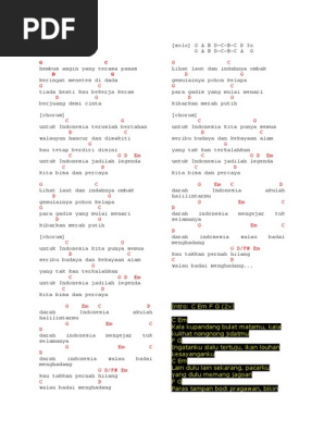 Chord originalnya intro. G c hembus angin yang terasa panas d g keringat menetes di dada g c tiada henti. Chord superman is dead jadilah legenda intro g g c hembus angin yang terasa panas d g keringat menetes di dada g c tiada henti kau bekerja keras d g berjuang demi cinta chorus c g untuk indonesia teruslah bertahan d c walaupun hancur dan disakiti g kau tetap berdiri disini c g d em untuk indonesia jadilah legenda c d kita bisa dan percaya g c lihat laut dan indahnya ombak d g gemulainya pohon kelapa g c para gadis yang mulai menari d g kibarkan merah putih chorus c g untuk indonesia.