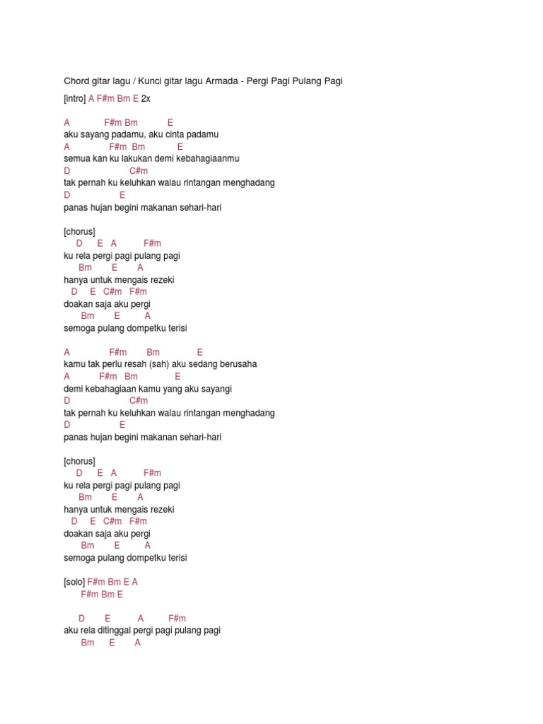 • Chord Jpeg Kunci Gitar Chord Lirik Lagu Armada Pergi Pagi Pulang Pagi Versi Kunci Dasar