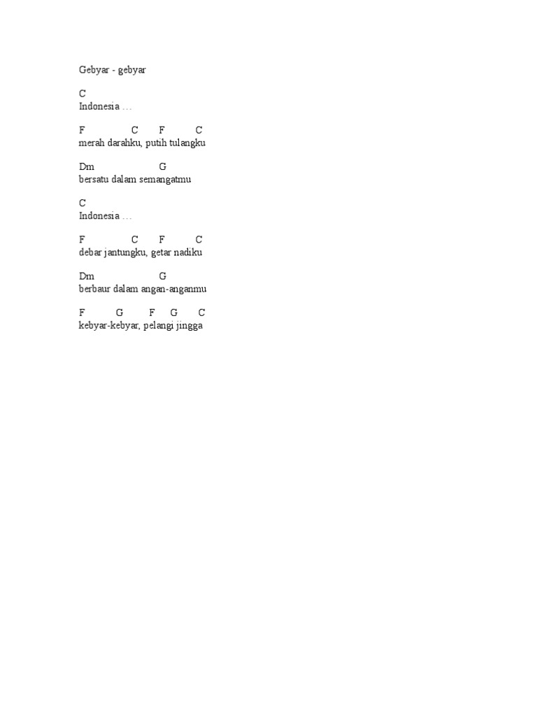 Indonesia merah darahku putih tulangku kebyar kebyar. Chord kebyar kebyar gombloh intro. Merah darahkuputih tulangku f b bersatu dalam semangatmu e indonesia.