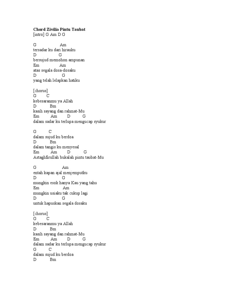 Chord Zivilia Pintu Taubat Lagu Pop Indonesia Galau Yang Enak Didengar