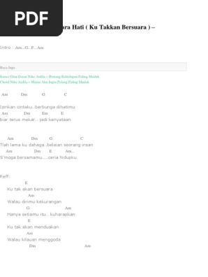Aku takkan bersuara chords by nike ardilla. Ku dahaga g c belaian. Chord aku takkan bersuara izinkan cintaku berputik dihatimu biar terus mekar jadi kenyataan berkurun ku tak akan bersuara walau dirimu kekurangan hanya setiamu itu by nike ardilla.