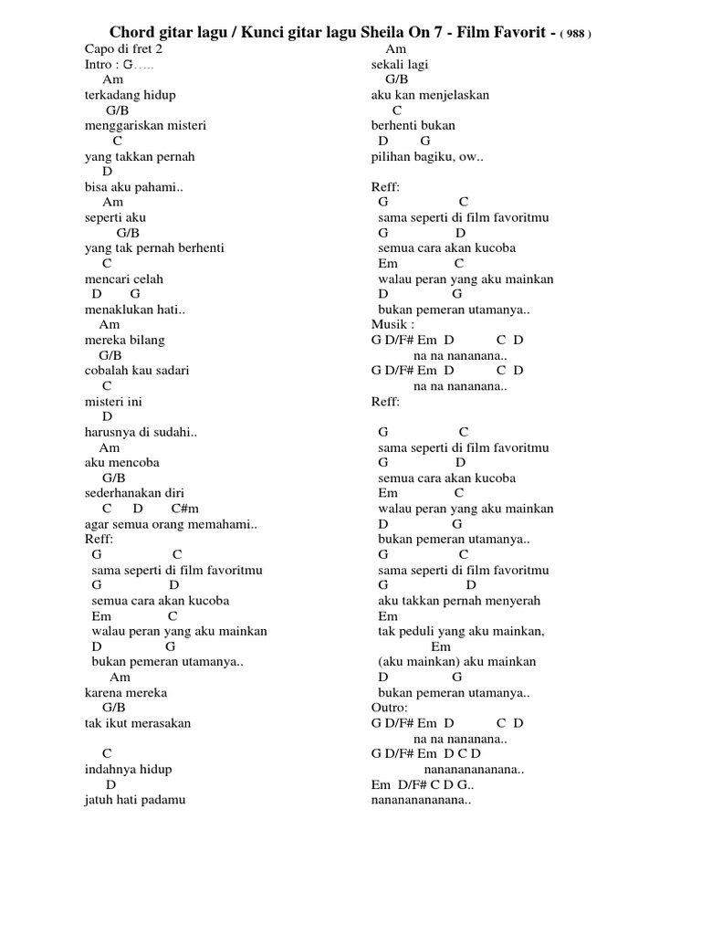Perlahan kaupun dm lupakan aku c mimpi burukmu dimana tlah f ku tancapkan duri tajam em kau pun menangis. Chord sheila on 7 dan intro. G c g c g sifatmu nan slalu c redahkan ambisiku g tepikan khilafku c dari bunga yang layu g saat kau.