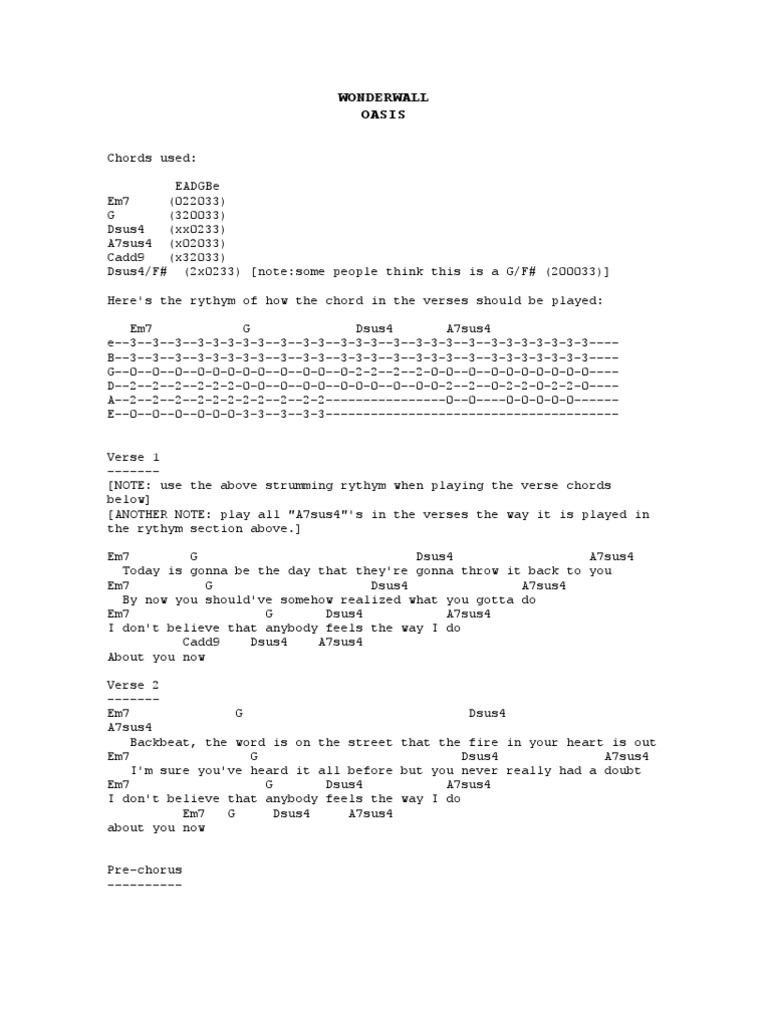 Wonderwall capo 2nd fretno need to but its the original em7 g today is gonna be the day dsus4 asus47 that they gonna throw it back to you em7 g by now you should have somehow dsus4 asus47 realized what you gotta doem7 g dsus4 asus47 i dont belive that anybody feels the way i do cadd9 dsus4 asus47 about you now. Capo sounds good on either the 2nd fret or if youre going for a slightly faster and lighter melody you can try it on the 5th fret. Wonderwall chords by oasis.