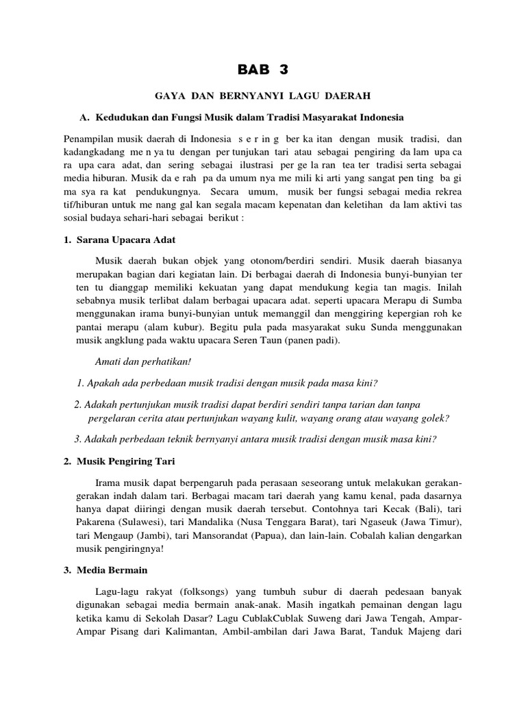 Kedudukan Dan Fungsi Lagu Daerah Di Indonesia, Gaya Bernyanyi Lagu Daerah Bab 3 Kelas 8 Materi Pengetahuan Blog Khusus Guru Spensaka Smpn1kalimanah