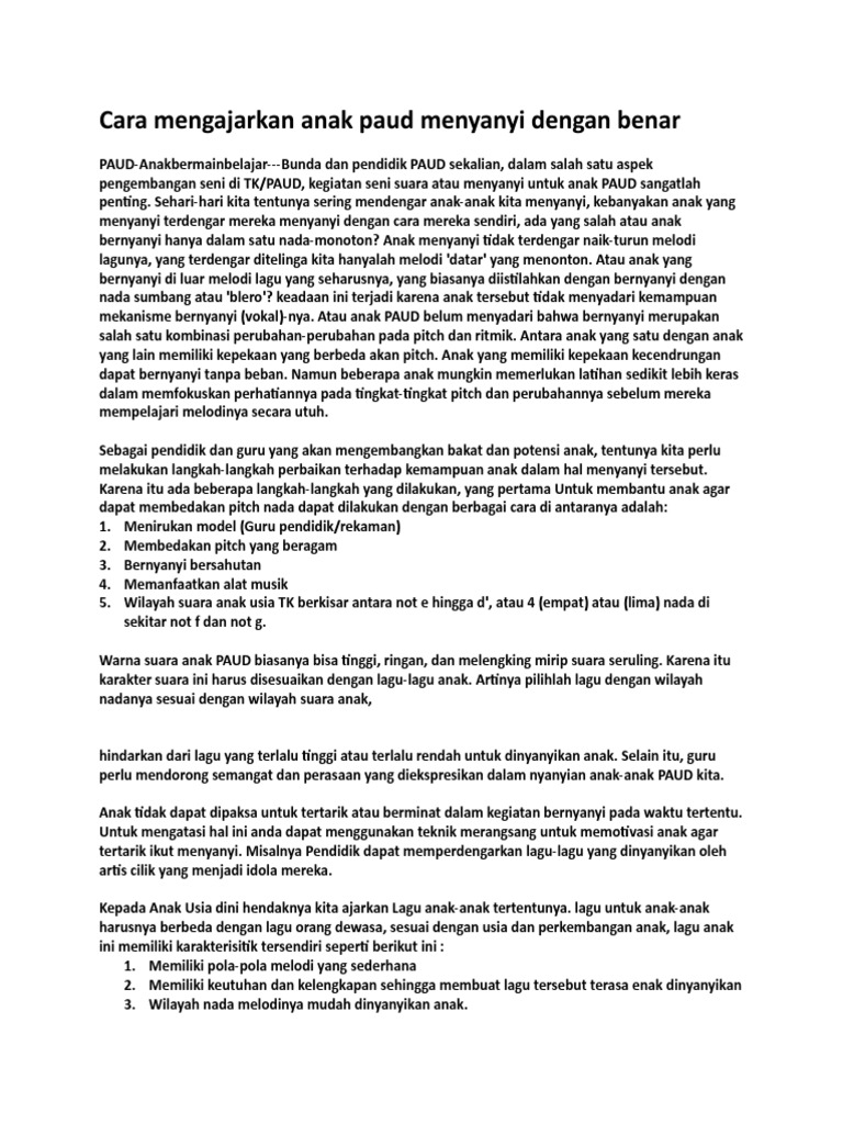 Lagu Anak Anak Dengan Pola Sederhana, Cara Mengajarkan Anak Paud Menyanyi Dengan Benar