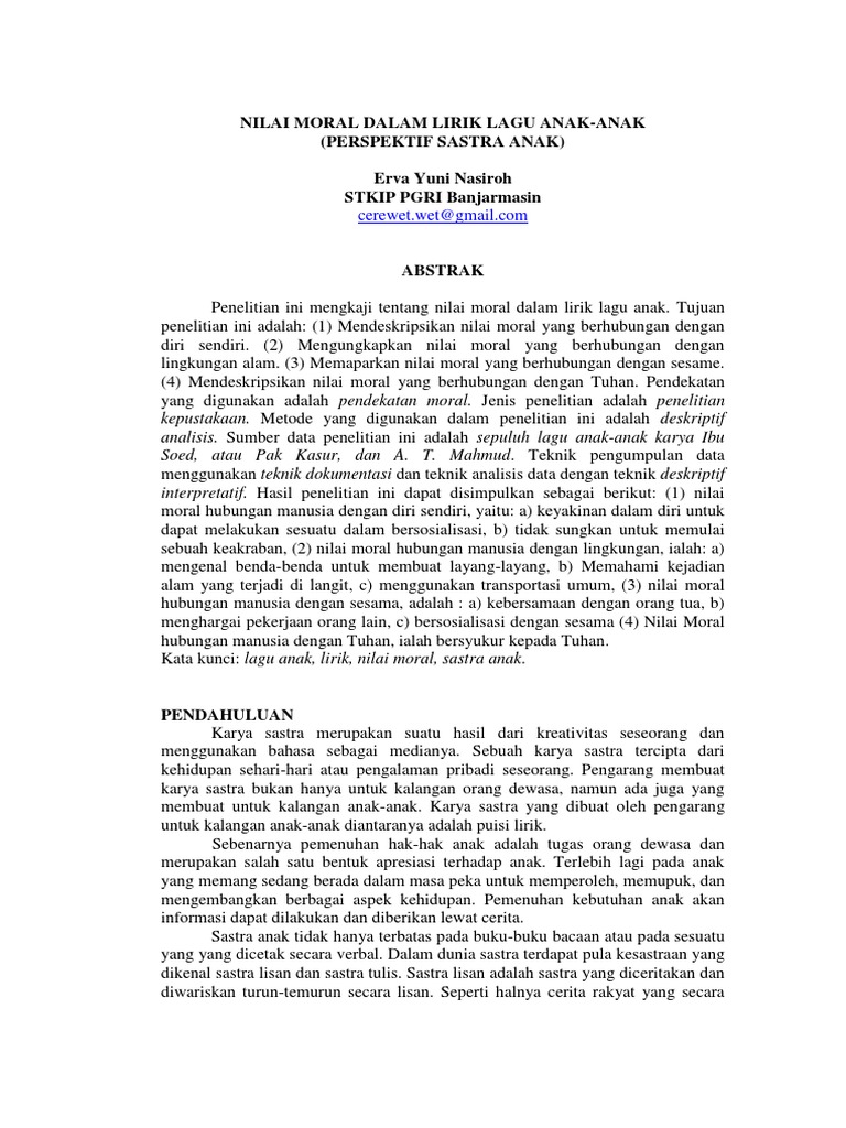 Artikel Nilai Moral Dalam Lirik Lagu Anak Erva Zara