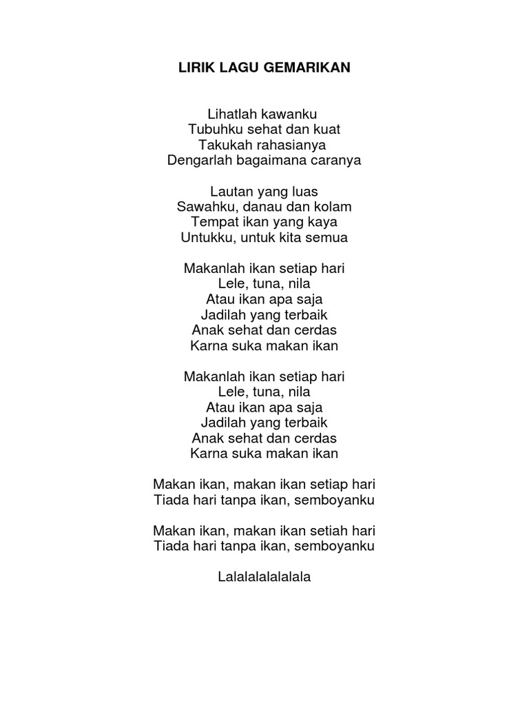 Unduh lirik aku anak sehat dalam pdf unduh mp3 lagu aku anak sehat. Lirik lagu 4 sehat 5 sempurna sepiring nasi sehari 3 kali itu baru cukup kalori lauk pauknya yg sederhana cukup gizi dpt lah terbeli buah buahan paling banyak disini nusantara tak tertandingi sayuran segar semangat mekar berseri cerah setiap hari. Ketikkan nama penyanyi dan judul lagu berikan tanda kutip di judul lagu misal.
