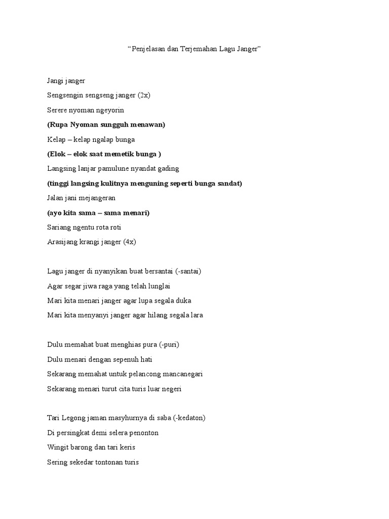 Lagu terbaru 2020 indonesia terpopuler lirik. Tari janger tergolong tari balih balihan sehingga lebih difungsikan untuk menghibur. Semoga dengan adanya rangkuman di atas bisa meningkatkan wawasan dan menambah ilmu pengetahuan kita semua mengenai kekayaan budaya dan sastra indonesia. Lagu daerah bali pulau bali adalah salah satu pilihan tempat wisata terbaik yang ada di indonesia untuk saat ini.