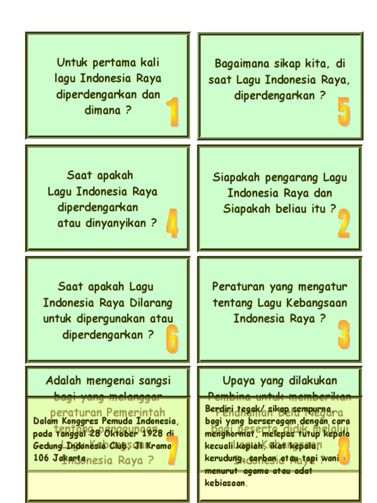 Indonesia raya ialah lagu kebangsaan indonesia yang dicipta pada tahun 1924 dan diperdengarkan buat pertama kali pada tahun 1928 di hadapan para peserta sumpah pemuda sejarah penukilan. Seperti terlihat dalam diorama yang terdapat di gedung museum tersebut terlihat penciptamya wage rudolf soepratman dengan gesekan biolanya tengah mengumandangkan indonesia raya. Disadur dari harian kompas edisi 2 november 2018 soepratman terinspirasi oleh pidato tentang persatuan dari sejumlah tokoh dalam kongres pemuda i 1926 lantas menggerakkannya untuk membuat lagu kebangsaan.