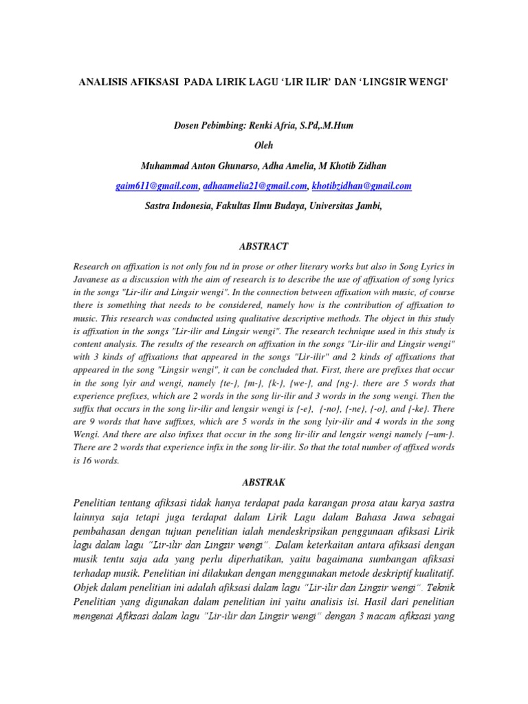 Jurnal Analisis Bahasa Jawa Dalam Lagu Lir Ilir Linguistic Typology Indonesia Lagu Mp3 Selamat Ulang Tahun