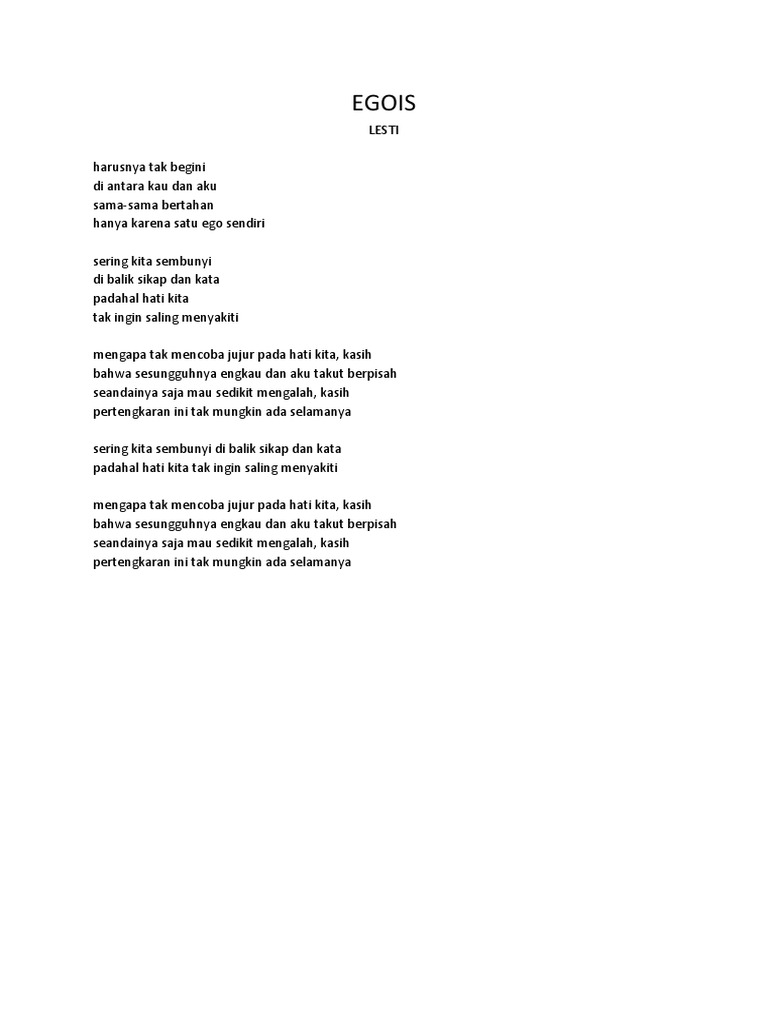 Lirik lagu egois tasya Indeed lately has been sought by consumers around us, perhaps one of you personally. Individuals now are accustomed to using the internet in gadgets to see image and video information for inspiration, and according to the title of this article I will talk about about Lirik Lagu Egois Tasya.