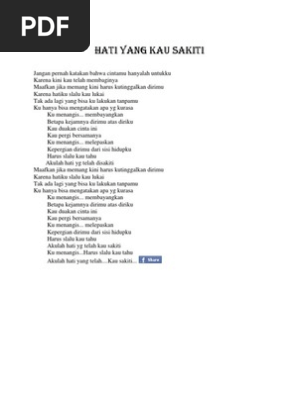Ku menangis membayangkan betapa kejamnya dirimu atas diriku kau duakan cinta ini kau pergi bersamany ku menangis melepaskan kepergian dirimu dari sisi hidupku harus selalu kau tahu akulah hati yang telah kau sakiti maafkan jika memang kini harus kutinggalkan dirimu karena hatiku selalu kau lukai tak ada lagi yang bisa ku lakukan tanpamu. Membayangkan betapa kejamnya dirimu atas diriku kau duakan cinta ini kau pergi bersamanya ku menangis. Lirik lagu hati yang kau sakiti rossa.