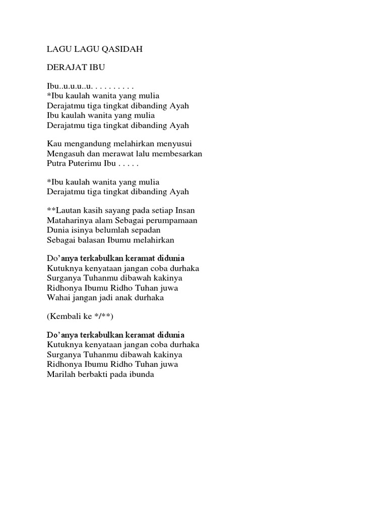 Lirik lagu qasidah ibu Indeed recently has been hunted by consumers around us, perhaps one of you personally. People now are accustomed to using the net in gadgets to see image and video information for inspiration, and according to the name of the post I will discuss about Lirik Lagu Qasidah Ibu.