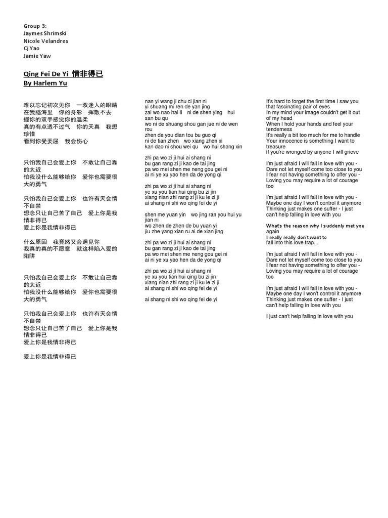 Find, Read, And Discover Lirik Lagu Qing Fei De Yi Bahasa Inggris, Such Us: