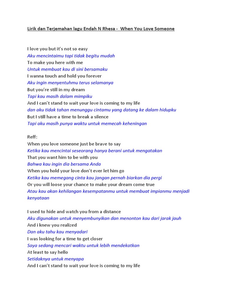 • Terjemahan Lirik Lagu Endah And Rhesa When You Love Someone Cara Data Hk 2019 2020,