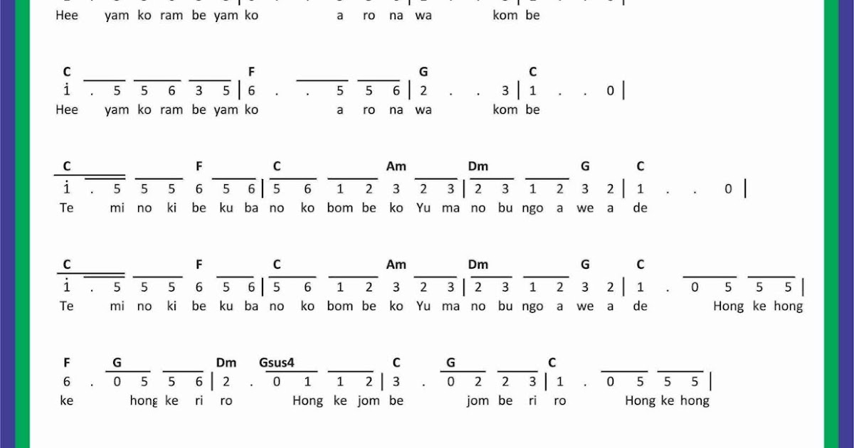 Dibawah ini saya sajikan not angkanot balok dan liriknya dalam bentuk gambar jpg jpeg dan png. Sunday july 29 2012. Lirik lagu daerah ini kami lengkapi dengan terjemahan lagu dalam bahasa indonesia sehingga dapat memudahkan kalian dalam memahami arti lagu yamko rambe yamko.