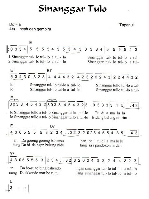 Sehingga lebih mudah belajar lagu ini. Not angka lagu sinanggar tulo dan not balok lagu sinanggar tulo disertai chords dan audio untuk mendengar melodi lagunya. Bagi anak sekolah yang membutuhkan partitur di atas.