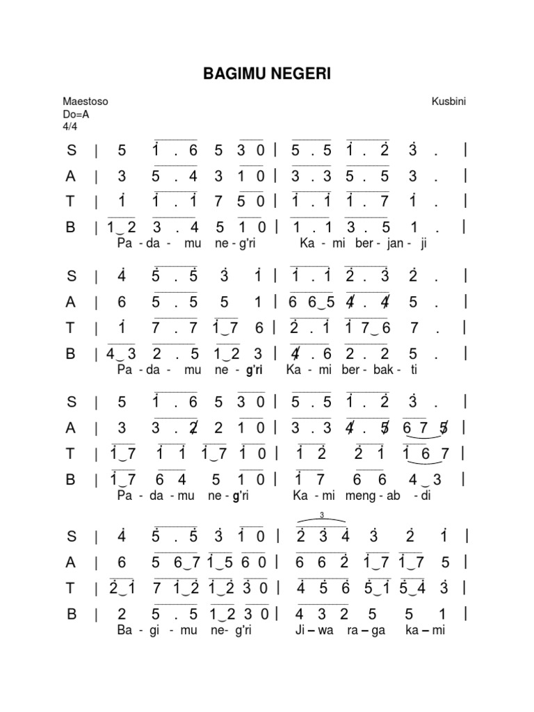 Partitur lagu nasional bagimu negeri Indeed recently has been sought by users around us, perhaps one of you. Individuals now are accustomed to using the net in gadgets to see image and video information for inspiration, and according to the name of this article I will discuss about Partitur Lagu Nasional Bagimu Negeri.